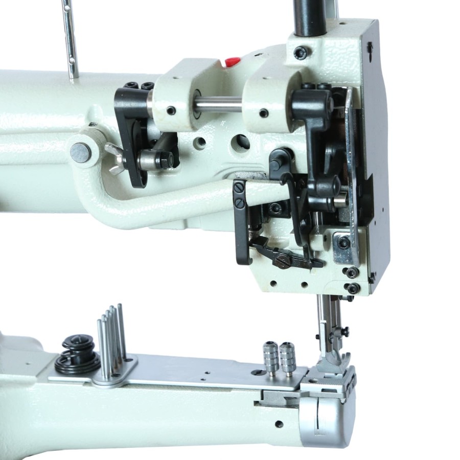 Memiliki bagian menjahit yang kecil (silindris) sehingga memudahkan untuk menjahit bagian dalam sepatu, lekukan bagian dalam tas, khusus nya resleting tas dan bagian lekukan lain yang sempit dan sukar dijangkau mesin jahit biasa